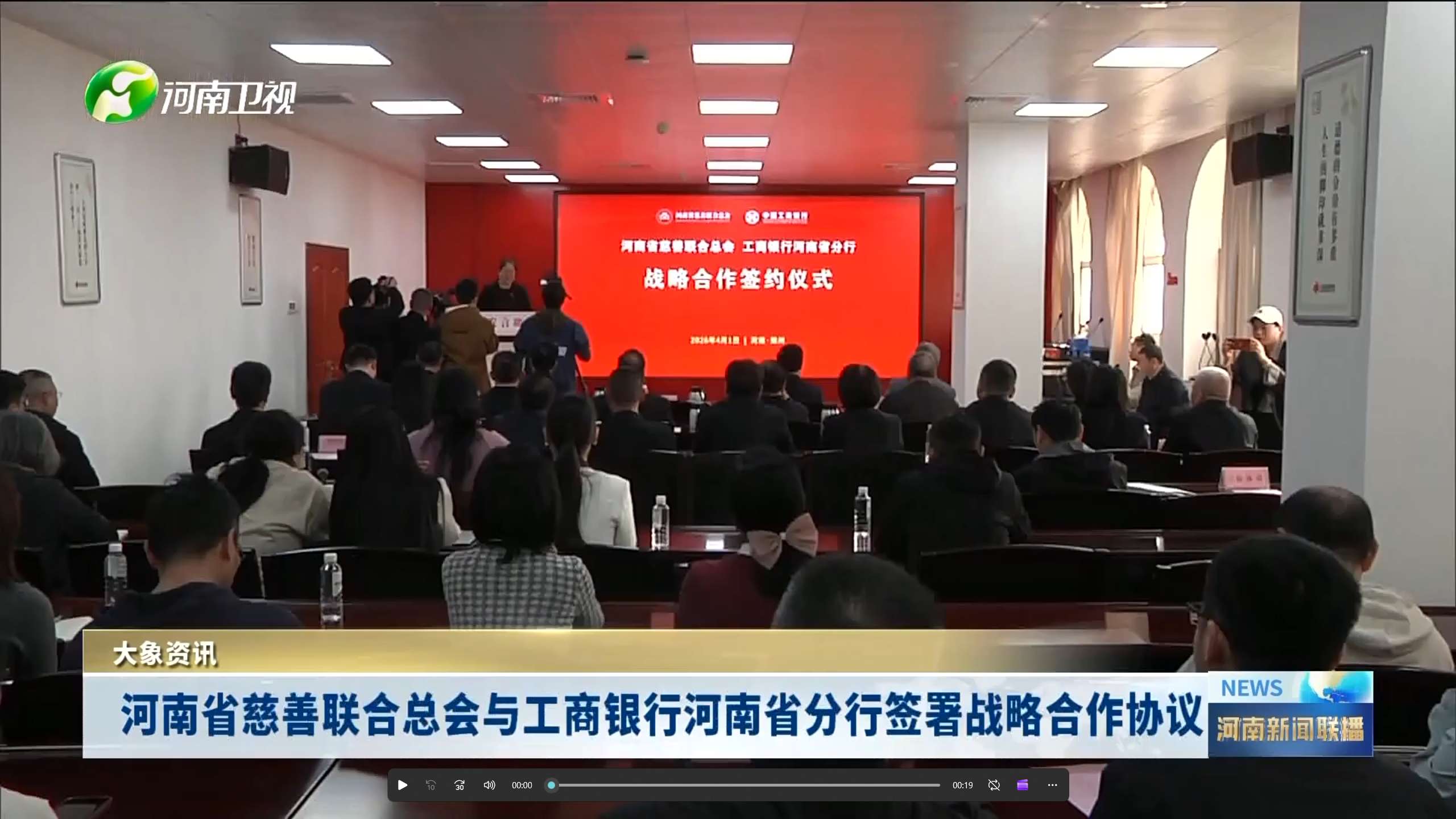 共同见证战略合作协议签署省慈善联合总会会长周春艳讲话工行河南省分行党委书记、行长黄焱致辞仪式现场4月1日,河南省慈善联合总会与工商银行河南省分行战略合作签约仪式在福彩大厦13楼会议室隆重举行。省慈善联