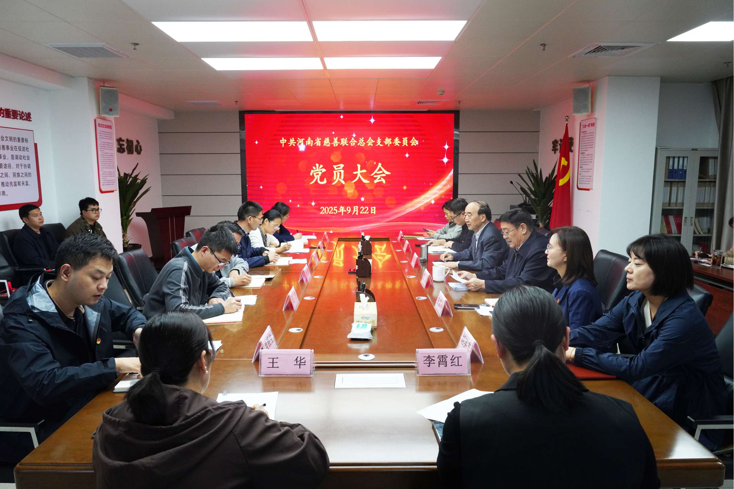 会议现场2025年9月22日下午,河南省慈善联合总会召开党员大会,传达学习习近平总书记关于锲而不舍落实中央八项规定精神、推进作风建设常态化长效化的重要指示精神,落实中央、省委党的建设工作领导小组会议精