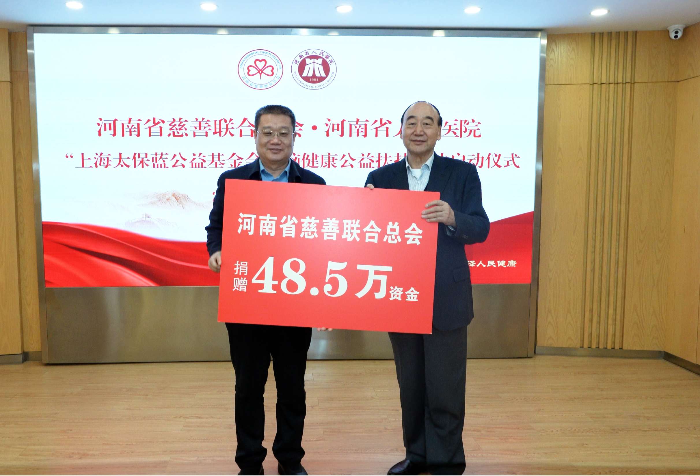 仪式现场邓永俭会长代表省慈善联合总会向省人民医院捐赠资金48.5万元,定向用于郑州市老年认知症(阿尔茨海默病)公益筛查及老年人脑健康公益服务活动 11月27日上午,由河南省慈善联合总会与河南省人民医院