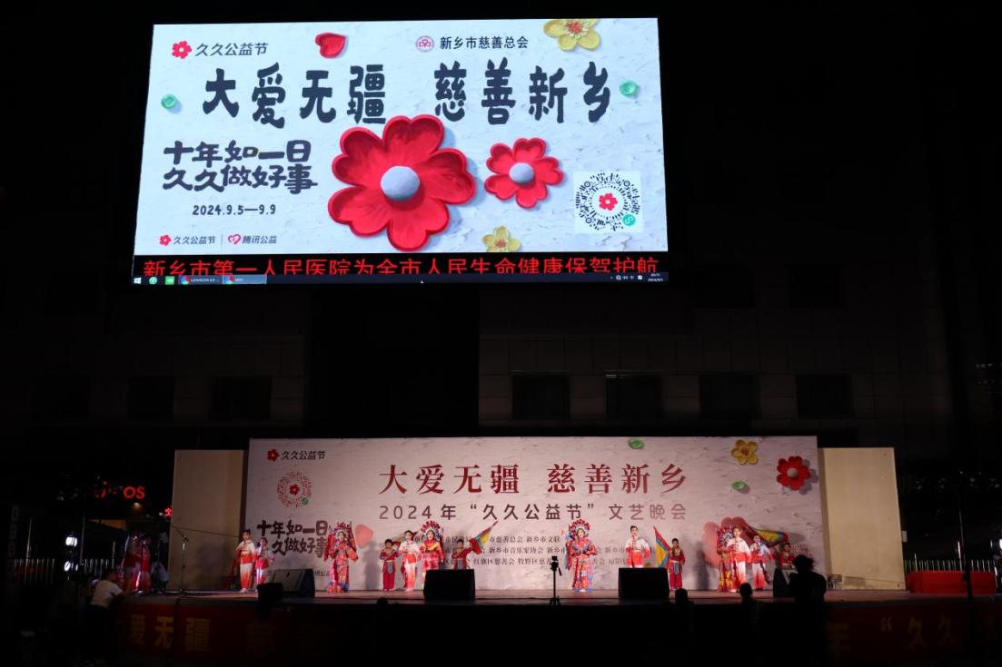 9月5日晚,由新乡市民政局、新乡市慈善总会、新乡市文联主办,新乡市戏剧家协会、新乡市音乐家协会、新乡市曲艺家协会、新乡市朗诵演讲协会、卫滨区慈善会、红旗区慈善会、牧野区慈善会、凤泉区慈善会、原阳县文联协办的2024年“久久公益节”文艺晚会在卫滨区怡园广场举行。