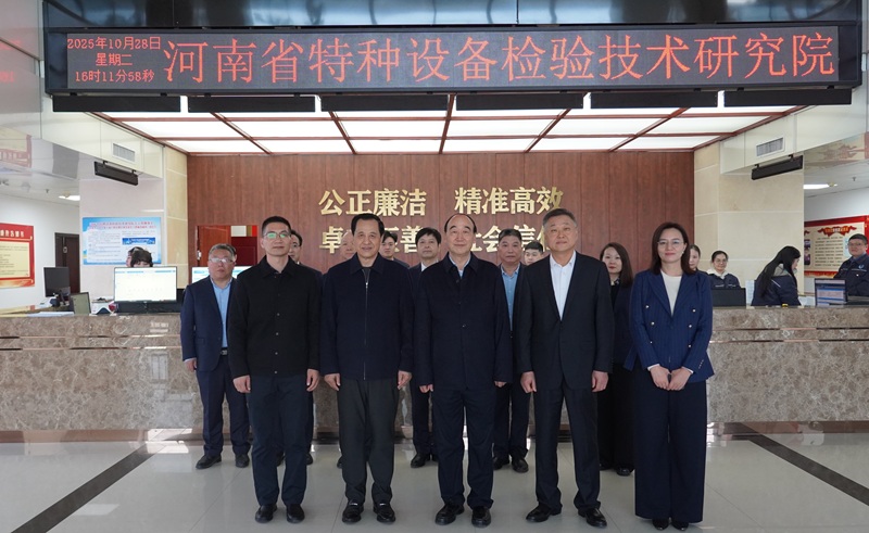 邓永俭会长一行先来到河南检验集团锅炉压力容器检验技术科学研究院有限公司和特种设备检验技术研究院有限公司,观看了企业宣传片并参观了部分实验室和业务大厅,听取了相关负责人关于企业改革发展情况的介绍。随后,邓永俭会长一行来到河南检验集团企业文化展厅,详细了解了河南检验集团的发展历程、业务范围及重大项目成果,对河南检验集团近几年在改革发展、科技创新等方面取得的成绩表示赞赏。