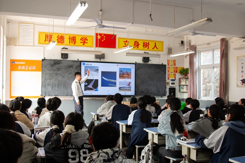 捐赠仪式结束后,飞行学院的飞行大学生结合自身的航空飞行学习经历,以知识讲解和课堂互动的方式,为孩子们奉献了一场引人入胜、通俗易懂的航空飞行知识科普讲座,当场点燃了不少孩子立志飞行的梦想。