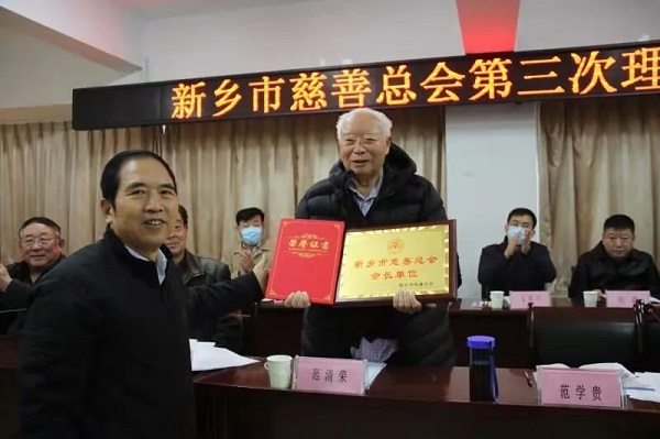 新乡市慈善总会和市民政局领导对企业副会长、常务理事、理事单位进行了荣誉授牌、颁发荣誉证书